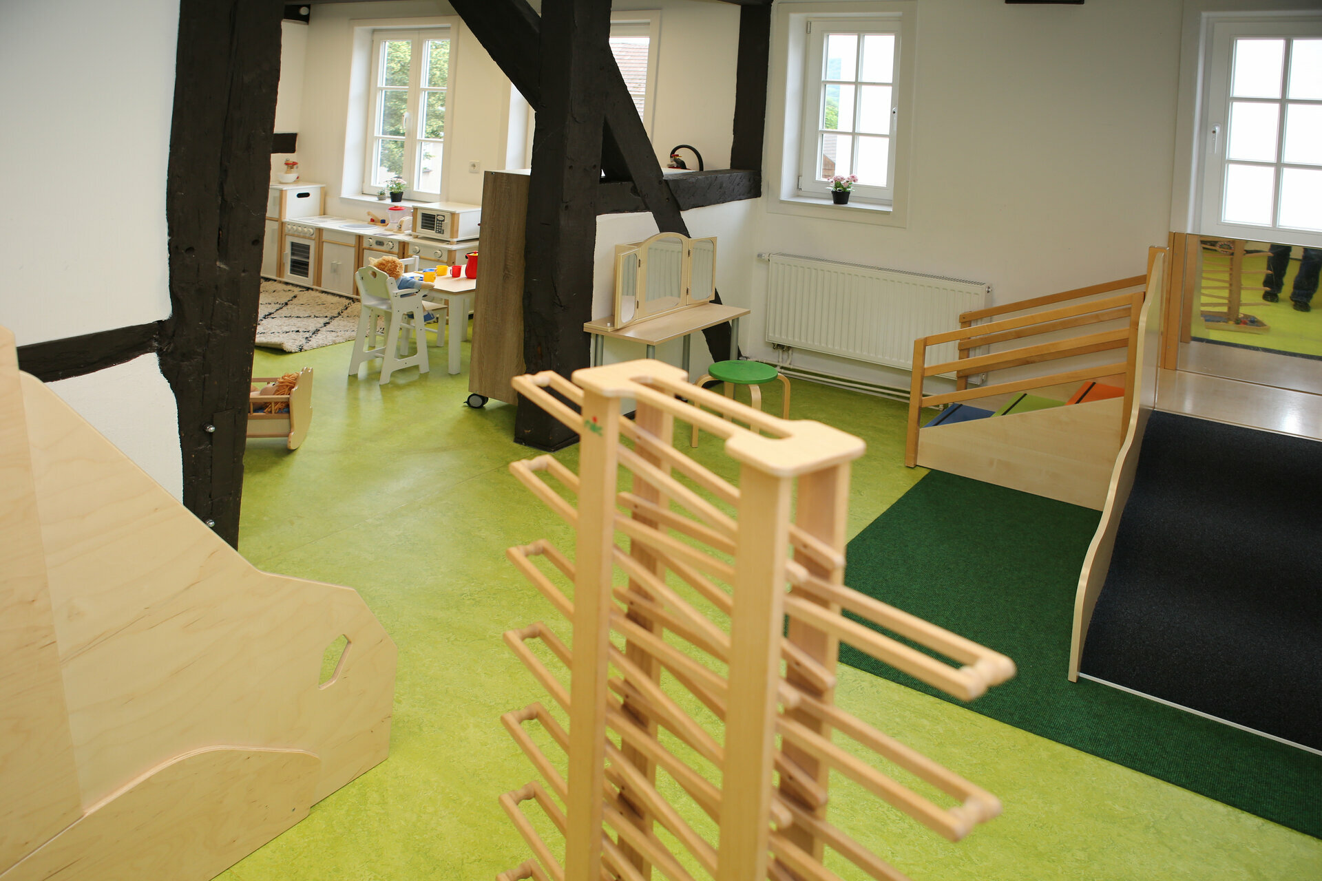 Besondere Bedeutung tragen dabei die Funktionsräume, welche nach spezifischen Spielbereichen gegliedert sind. Die Kinder dürfen im Alltag frei entscheiden, in welchem Spielbereich sie aktiv sein möchten.